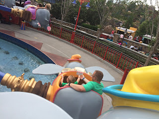 After haircuts we were back at the rides. We did Dumbo and the teacups again. Ethan finally got to ride the 7 Dwarfs Minetrain. The 90 minute wait wasn't something we had wanted to do. So I adjusted our fast pass for the day to add this on. I'm so glad I did. He absolutely loved it. He keeps telling me it was scary. But, good scary not bad scary.